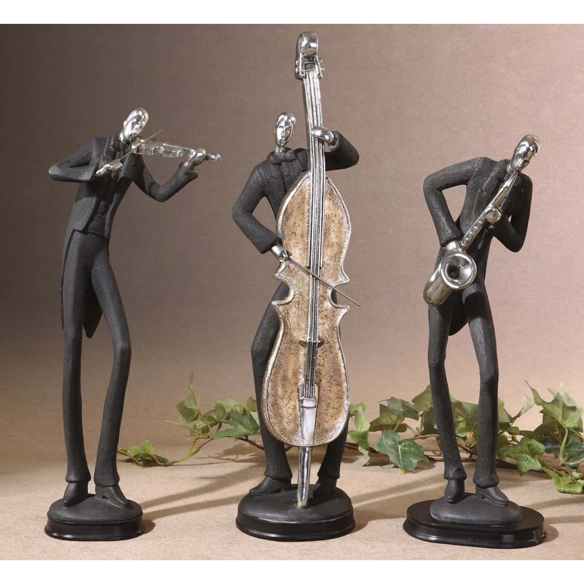 Jazz up any display in your home with this set of three figurines. Made from polyresin, each design showcases a gentleman standing up and playing a different musical instrument. Though they vary slightly in size, ranging from 15″ to 18″ tall, their matching gray and chestnut finish and silver-plated accents give them a unified feel. Beyond decorative, these versatile pieces are also perfect for weighing down papers in your office.
